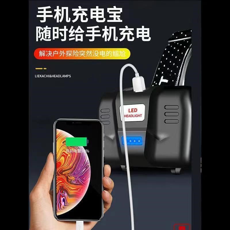 P100戶外探照礦燈白p光黃光LED強光夜釣頭燈大功率長續航可充手機