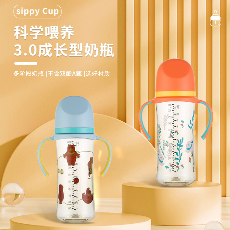 日康ppsu寬口徑奶瓶寶寶喝水喝奶瓶帶手柄新生嬰兒吸管奶瓶3167