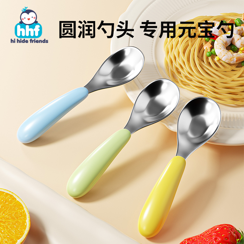 兒童316不銹鋼元寶勺子自主進食寶寶吃飯專用幼兒園喂飯輔食湯勺