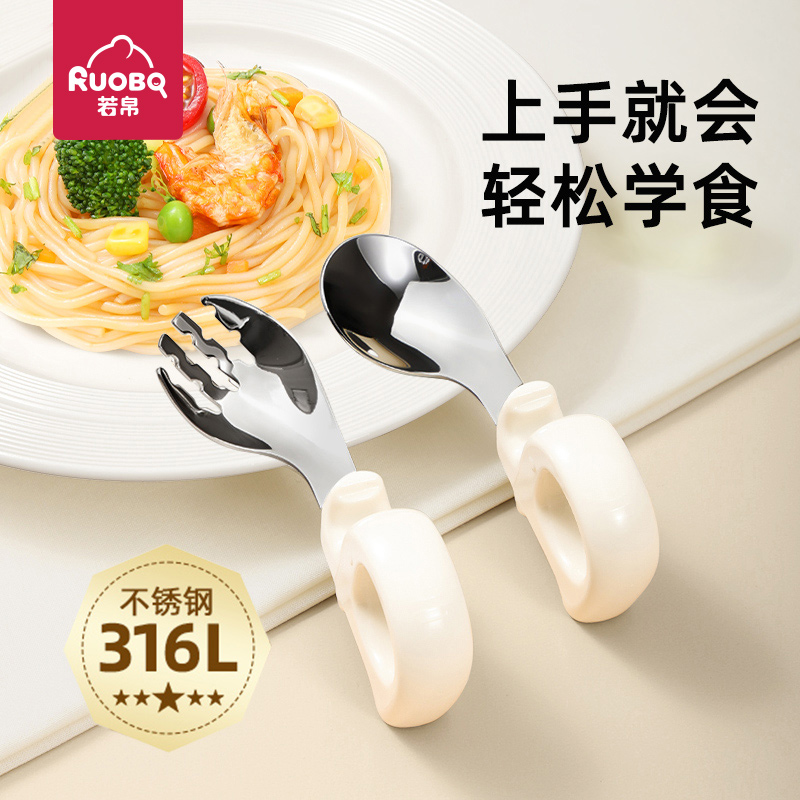 寶寶兒童一歲自主進食輔食勺子嬰兒學吃飯訓練硅膠不銹鋼叉勺餐具