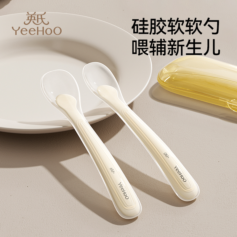 英氏寶寶輔食勺子新生嬰兒專用硅膠勺子吃飯勺子兒童餐具硅膠軟勺