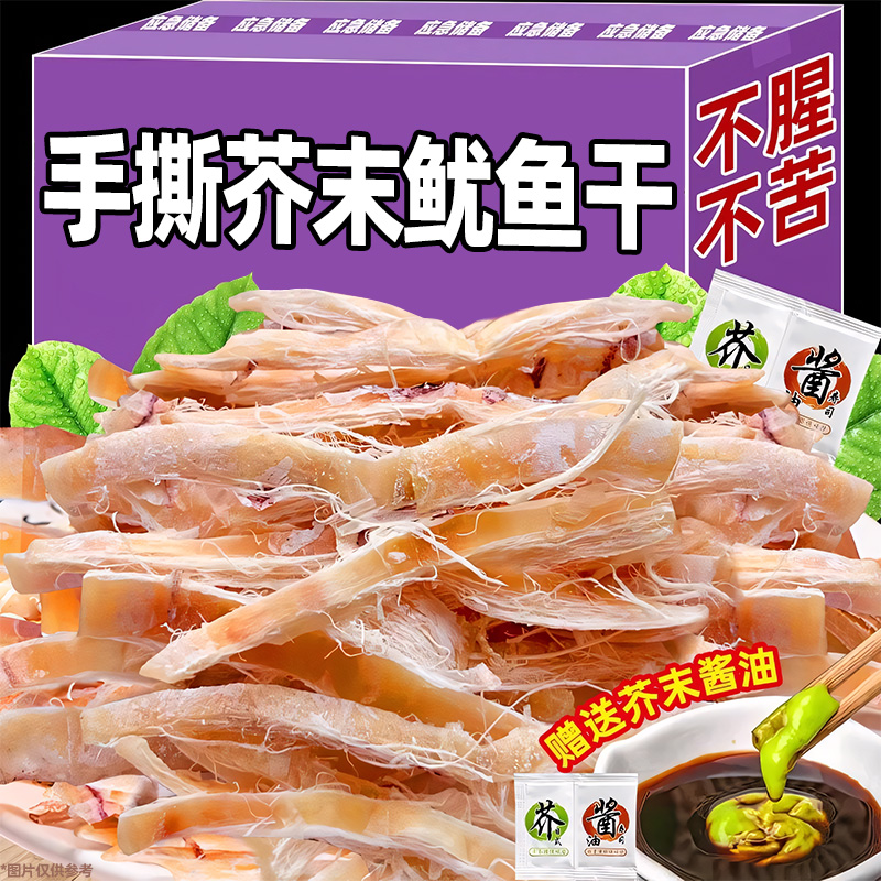 三千海芥末魷魚干開袋即食下酒菜零食手撕魷魚絲海鮮燒烤尤魚干貨