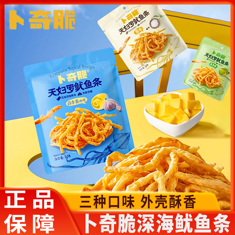 卜奇脆天婦羅魷魚條30g原味芥末味蒜香黃油味即食魷魚絲網紅小吃