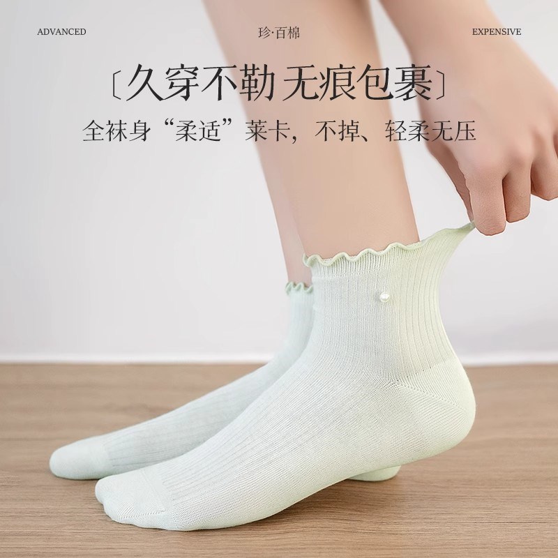 襪子女款2025新款爆款白色花邊春夏薄款襪Q防臭透氣學生短襪.