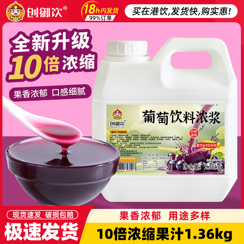 創御飲葡萄果汁10倍濃縮果汁1.36kg商用濃縮果漿水果茶原料沖飲