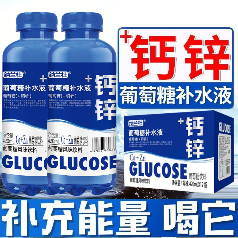 【含鈣鋅素】葡萄糖補水液420ml*12瓶整箱高溫出汗補充水分體力
