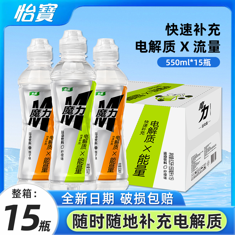 新品怡寶魔力電解質水運動蓋550ml*15瓶柚子檸檬味運動飲料整箱