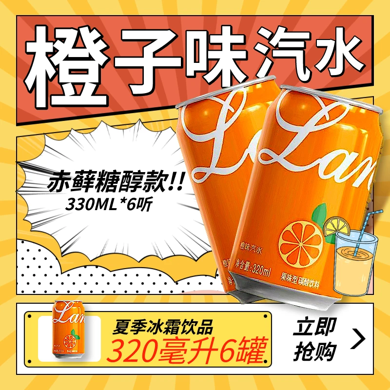 橙味汽水網紅碳酸飲料童年果味飲料氣泡水經典口味無蔗糖整箱罐裝
