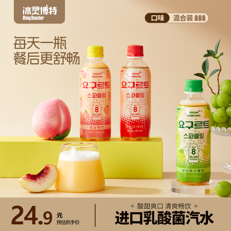 韓國原裝進口乳酸菌汽水冰靈博特碳酸飲料益生菌氣泡水0脂355ml