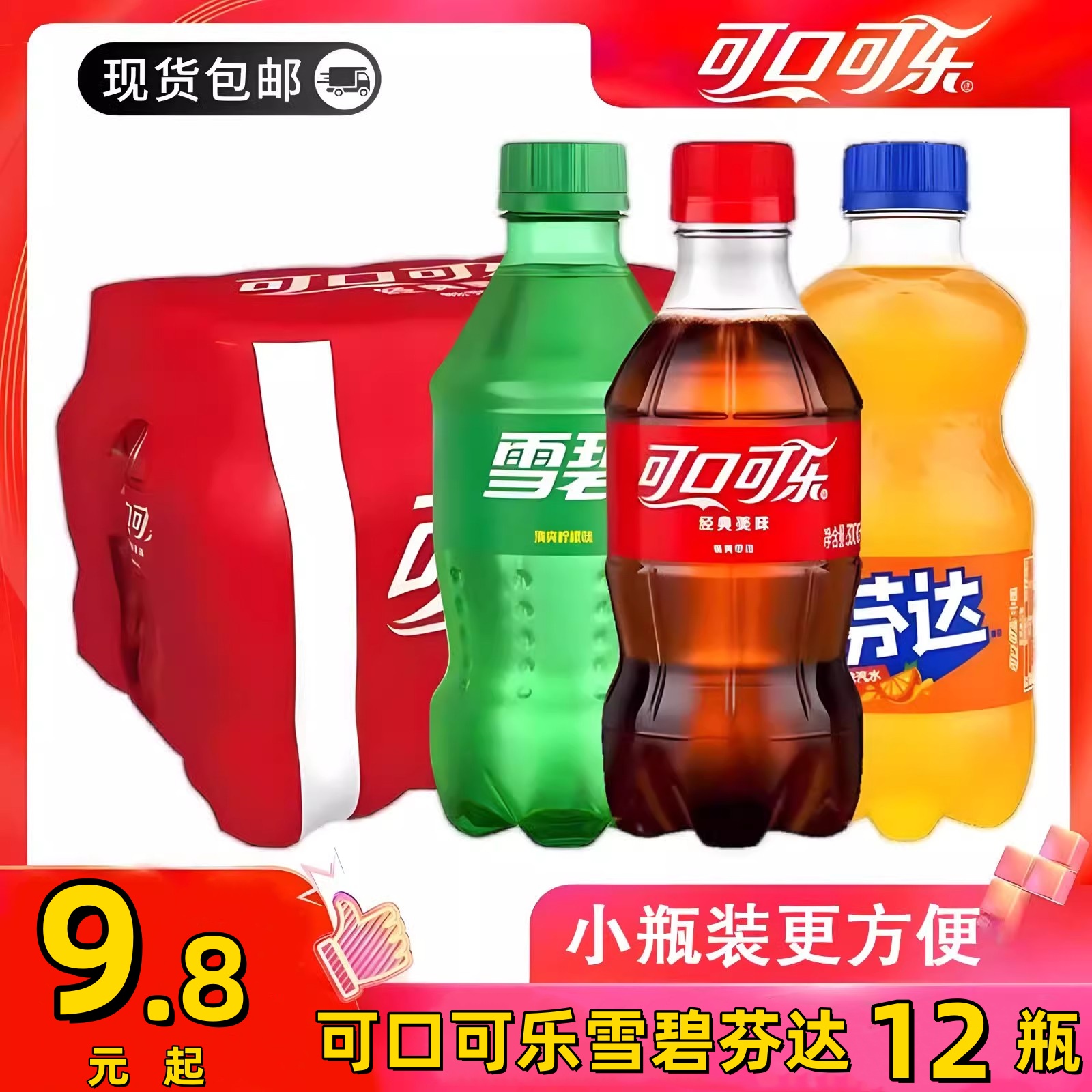 可口可樂雪碧芬達經典口味碳酸飲料300ml*12瓶混合味汽水小瓶批發