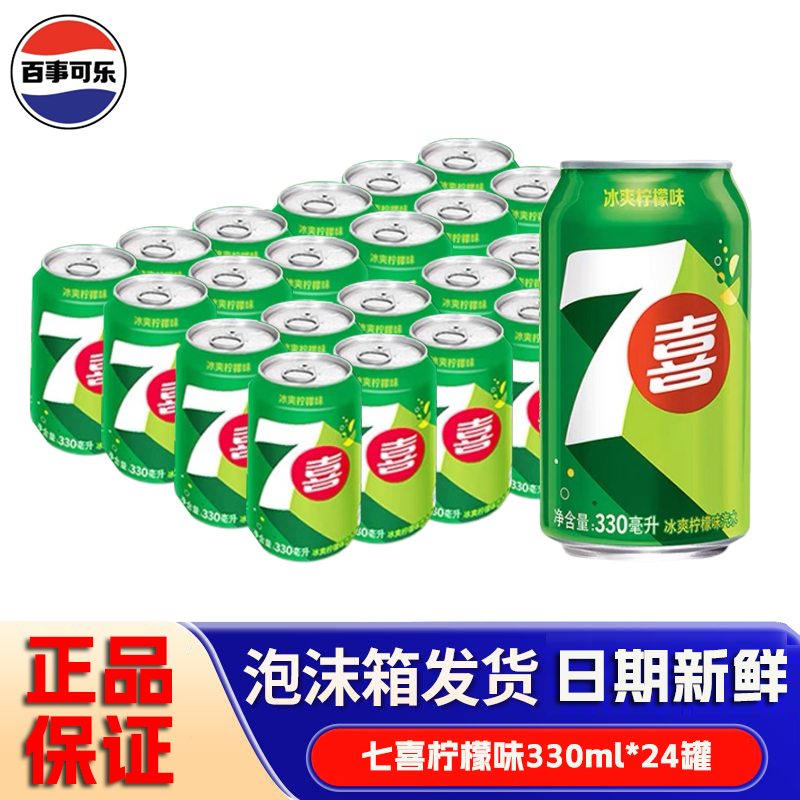 百事可樂七喜檸檬味24罐碳酸汽水拉罐裝聽裝經典飲料飲品解渴聚會
