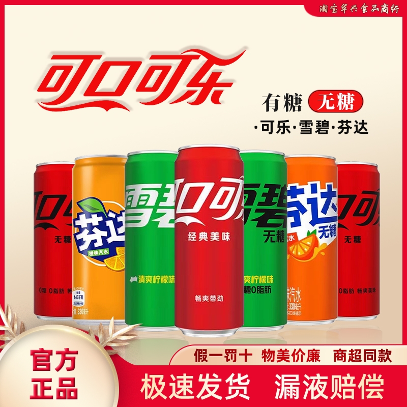 新日期無糖可口可樂雪碧芬達零糖碳酸飲料330ml易拉罐零度汽水無