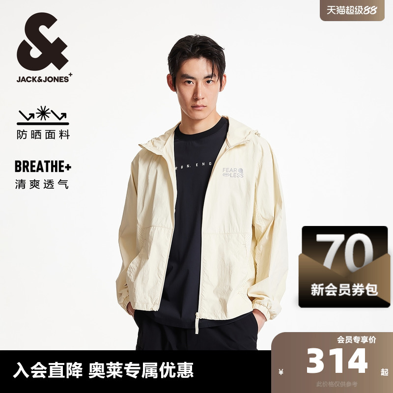 杰克瓊斯夏季新款反光膠印清爽透氣寬松連帽防曬服夾克外套男裝