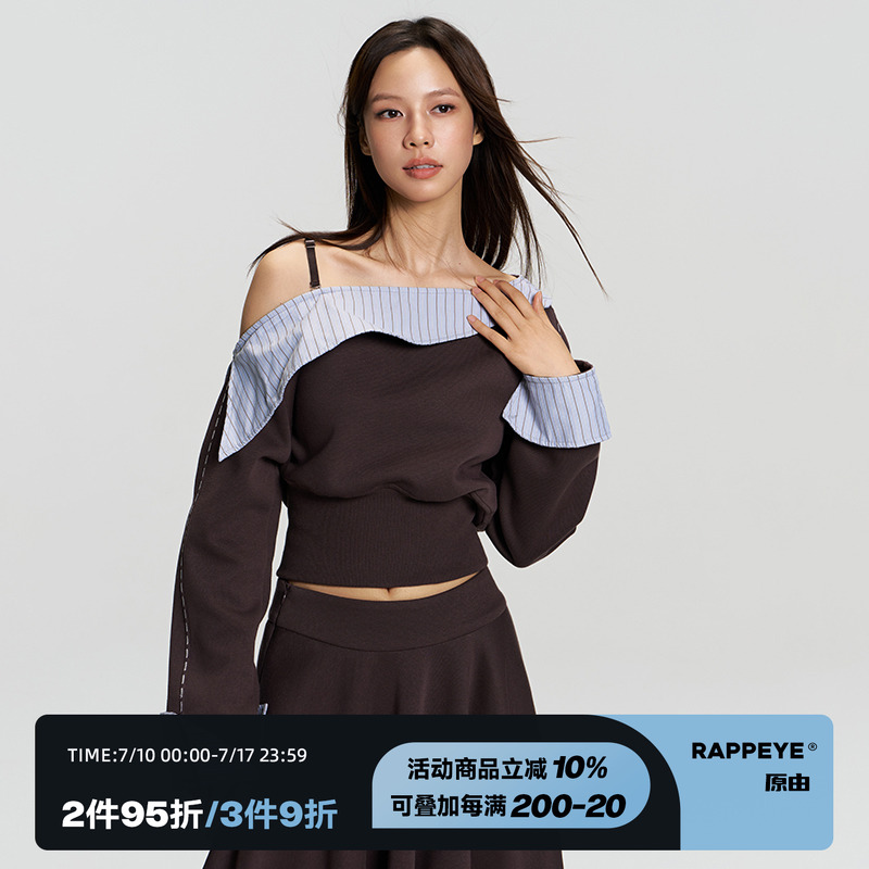 RAPPEYEx 鸚鵡梨“對的”設計感撞色斜肩衛衣松弛感收腰露肩上衣