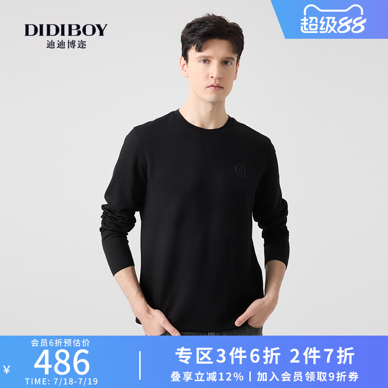 DIDIBOY迪迪博邇2025春季新款黑色百搭圓領衛衣男士親膚休閑上衣