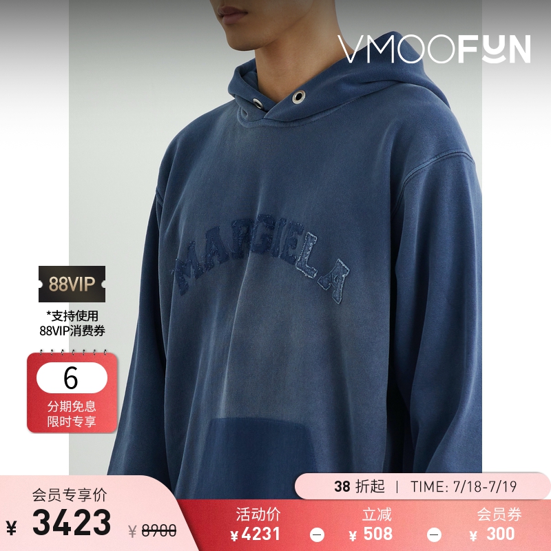 【折扣】Maison Margiela馬吉拉 男藍色仿舊貼花連帽衛衣