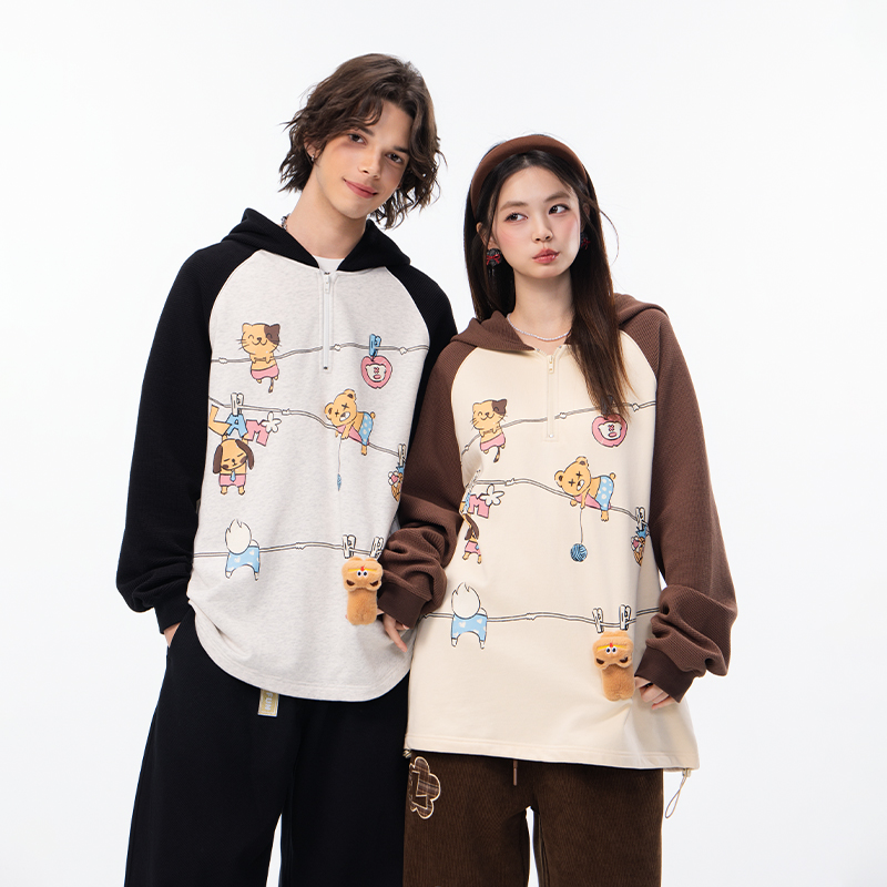LAMLICKA掛繩印花立體公仔拉鏈衛衣寬松oversize連帽休閑外套潮流