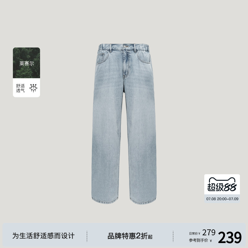 森柔牛仔|商場同款森馬牛仔褲男美式復古寬松直筒褲2025夏季新款