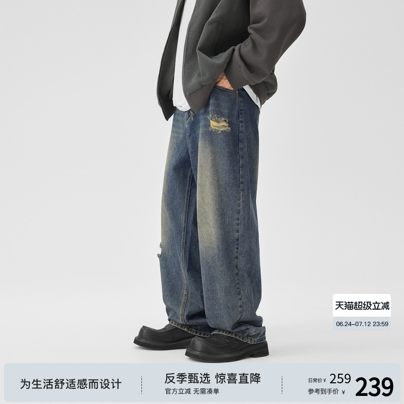 it :5cm/FIVECM街頭破洞廢土復古牛仔褲男女直筒寬松夏季新款長褲