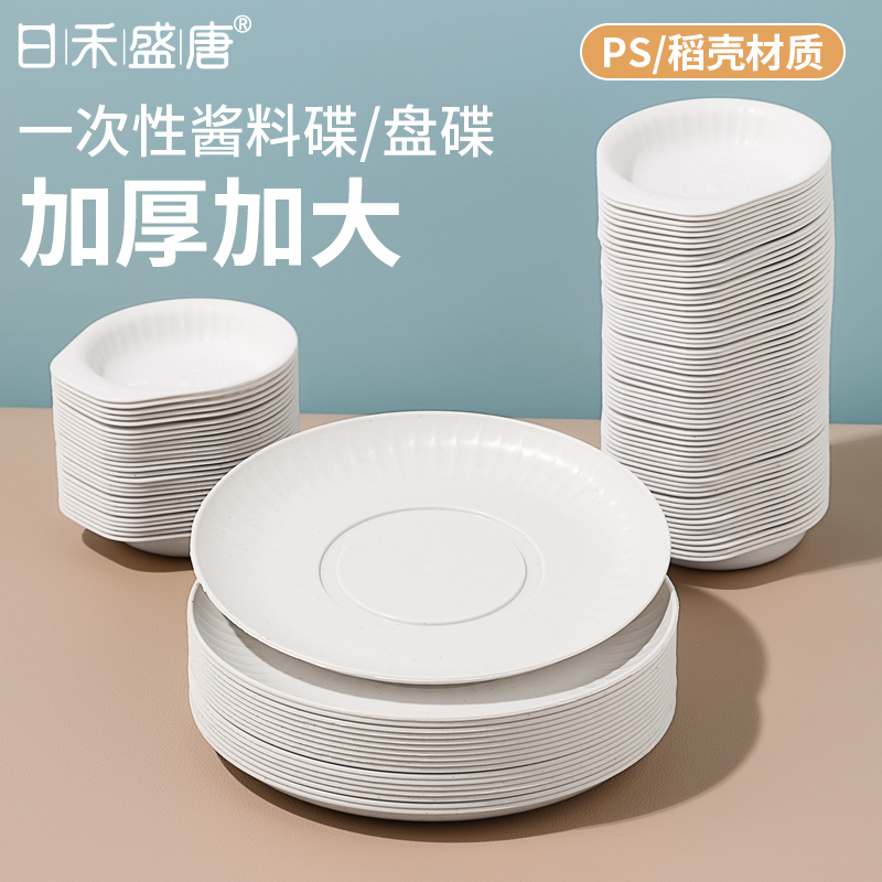 稻殼一次性盤子餐盤圓形菜盤加厚塑料耐高溫食品家用蛋糕燒烤碟子