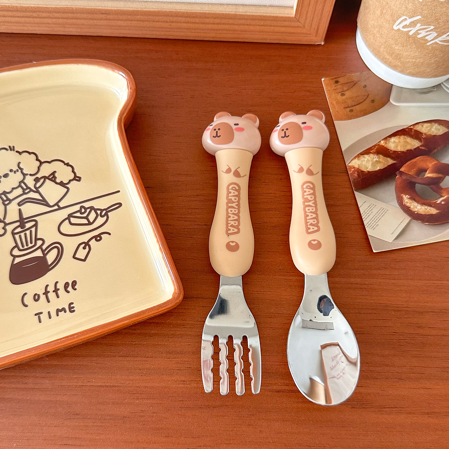 卡皮巴拉叉勺套裝食品級不銹鋼家用水果餐具個人專用寶寶兒童湯勺
