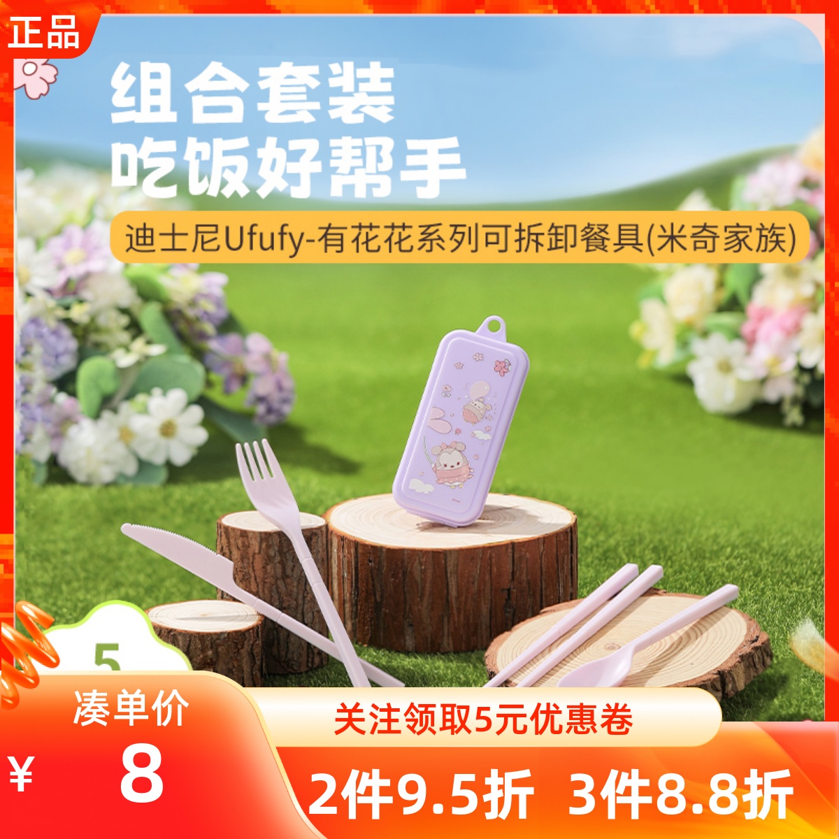 名創優品迪士尼Ufufy有花花可拆卸餐具5件套米奇家族兒童學生便攜