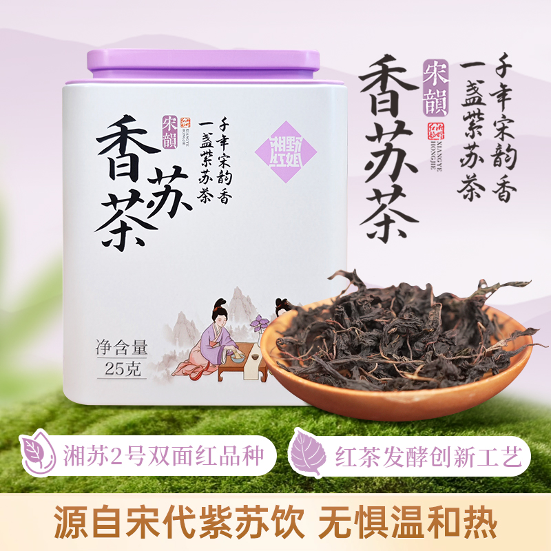 湘野紅姐紫蘇茶香蘇飲紫蘇熟水蘇子葉泡水湘蘇2號純紫蘇茶25g/罐