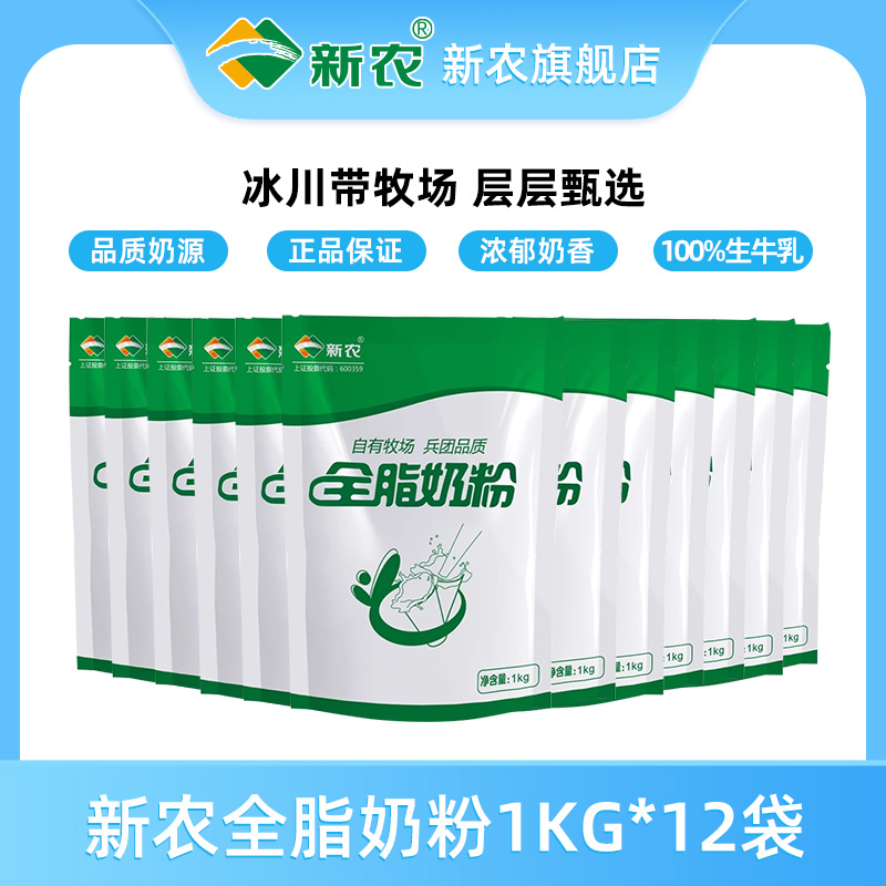 【5月生產】 新農全脂牛奶粉1kg*12袋學生中老年高鈣奶粉新疆