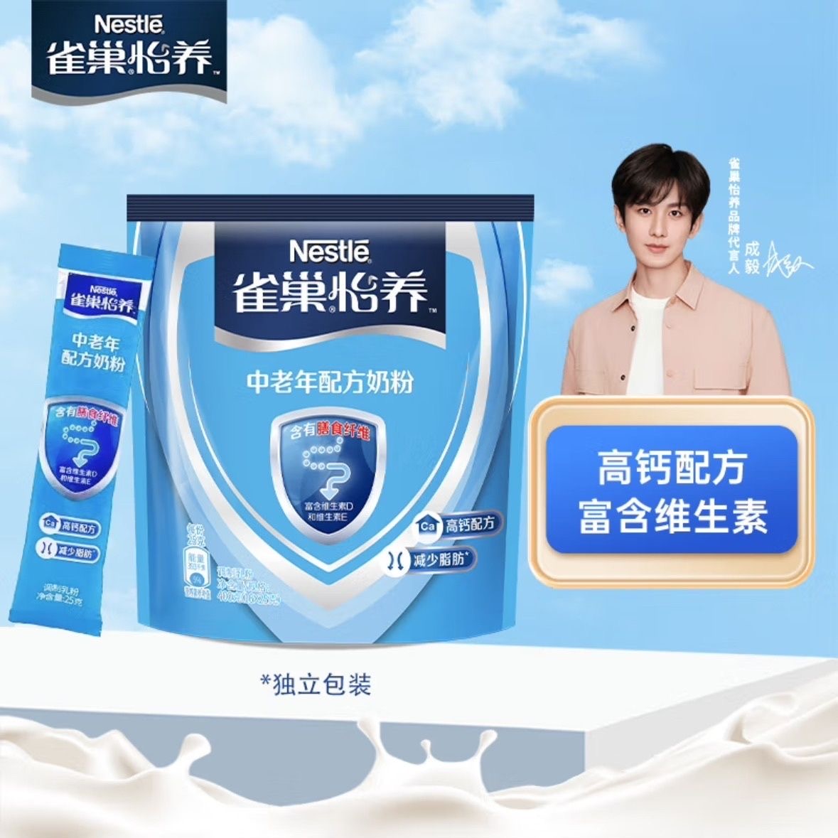 雀巢怡養中老年奶粉400g袋裝0蔗糖老人成人高鈣配方營養沖飲牛奶