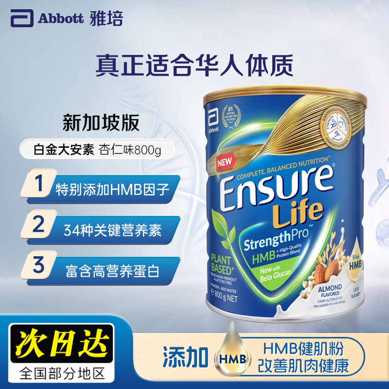 雅培大安素新加坡版進口中老年高鈣營養粉杏仁味800g奶粉加營養