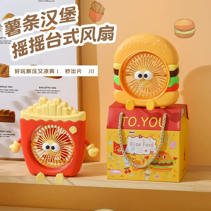 創意可愛漢堡薯條多功能手持風扇usb充電桌面小風扇實用生日禮物