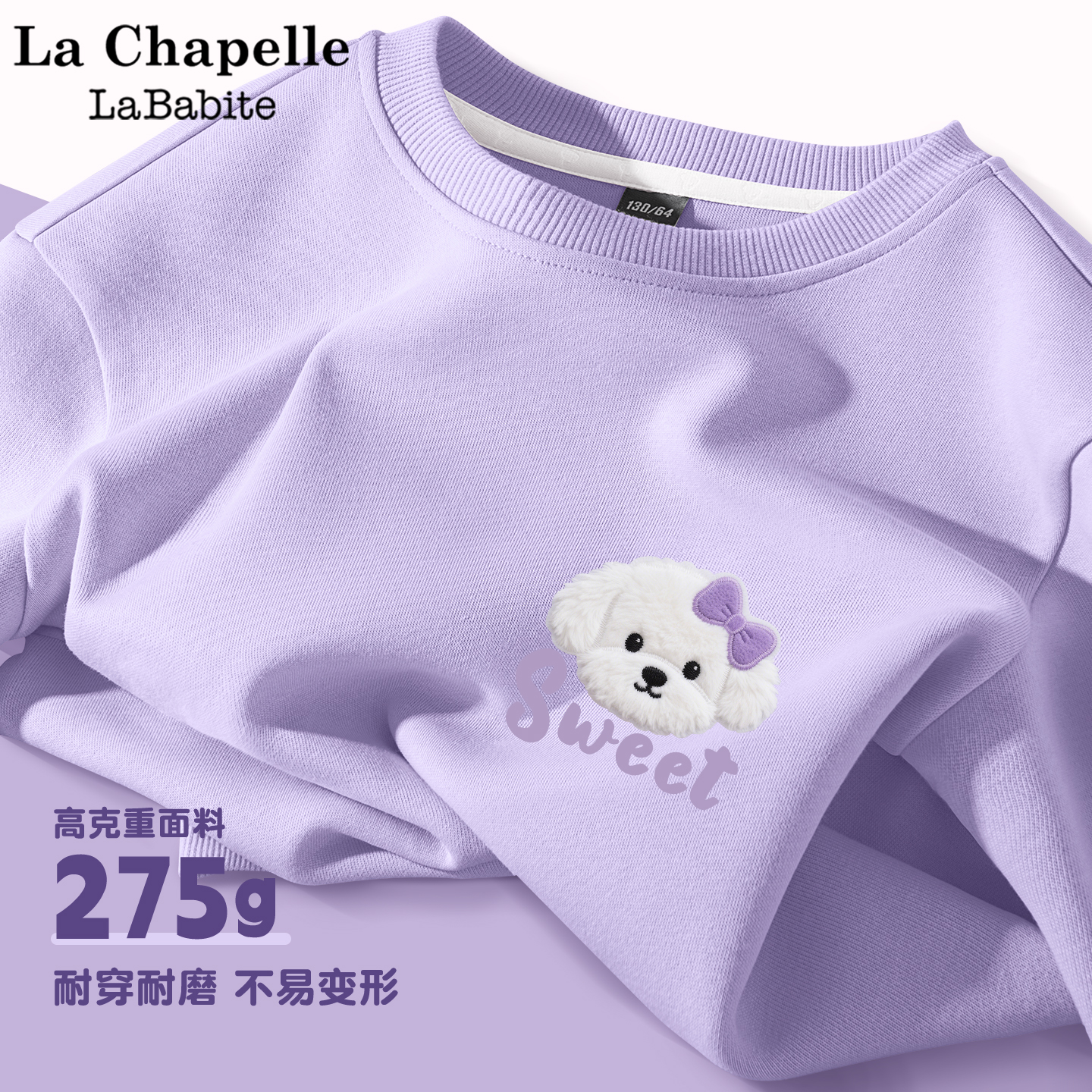 拉夏貝爾女童衛衣春秋2025新款兒童可愛圓領上衣女大童秋裝打底衫
