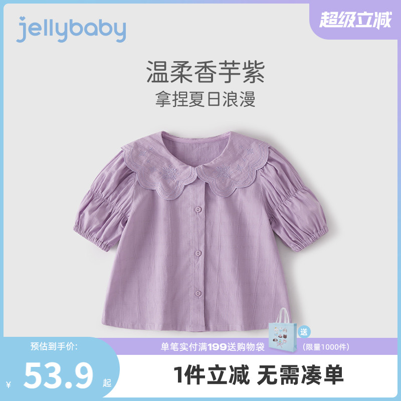 杰里貝比女孩純棉短袖夏裝薄款兒童新款衣服夏時尚女童洋氣小襯衫