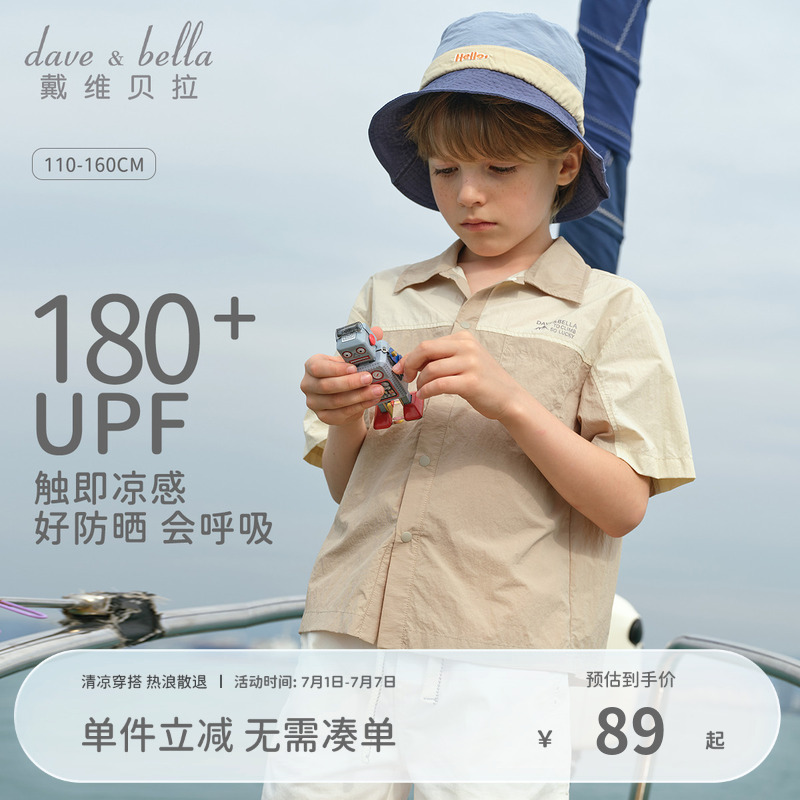 戴維貝拉男童短袖襯衫2025夏裝新款兒童防曬襯衣中大童涼感上衣