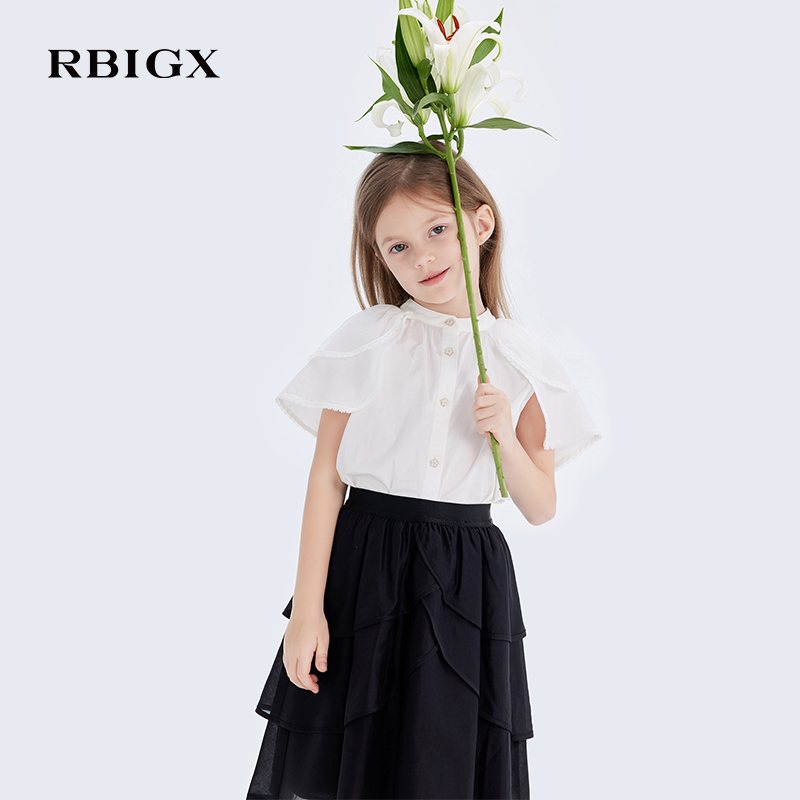 RBIGX瑞比克童裝2025夏季新款兒童寬松優雅女童短袖襯衫