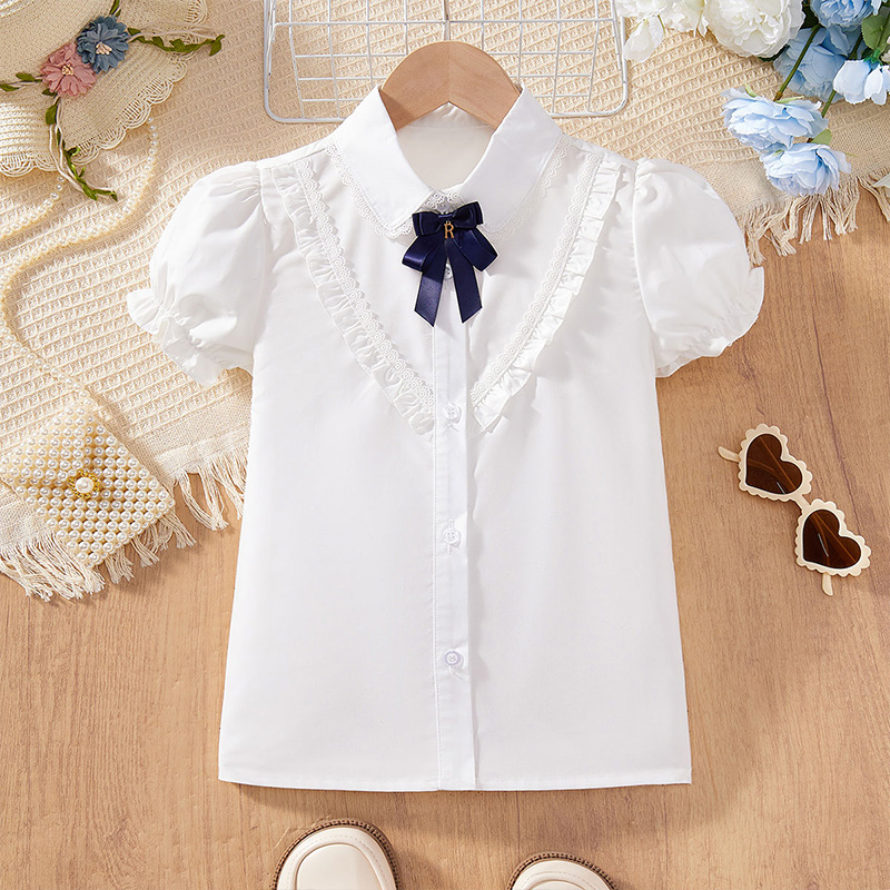 女童白色襯衫2025夏裝新款學生朗誦演出服兒童短袖小女孩漂亮襯衣