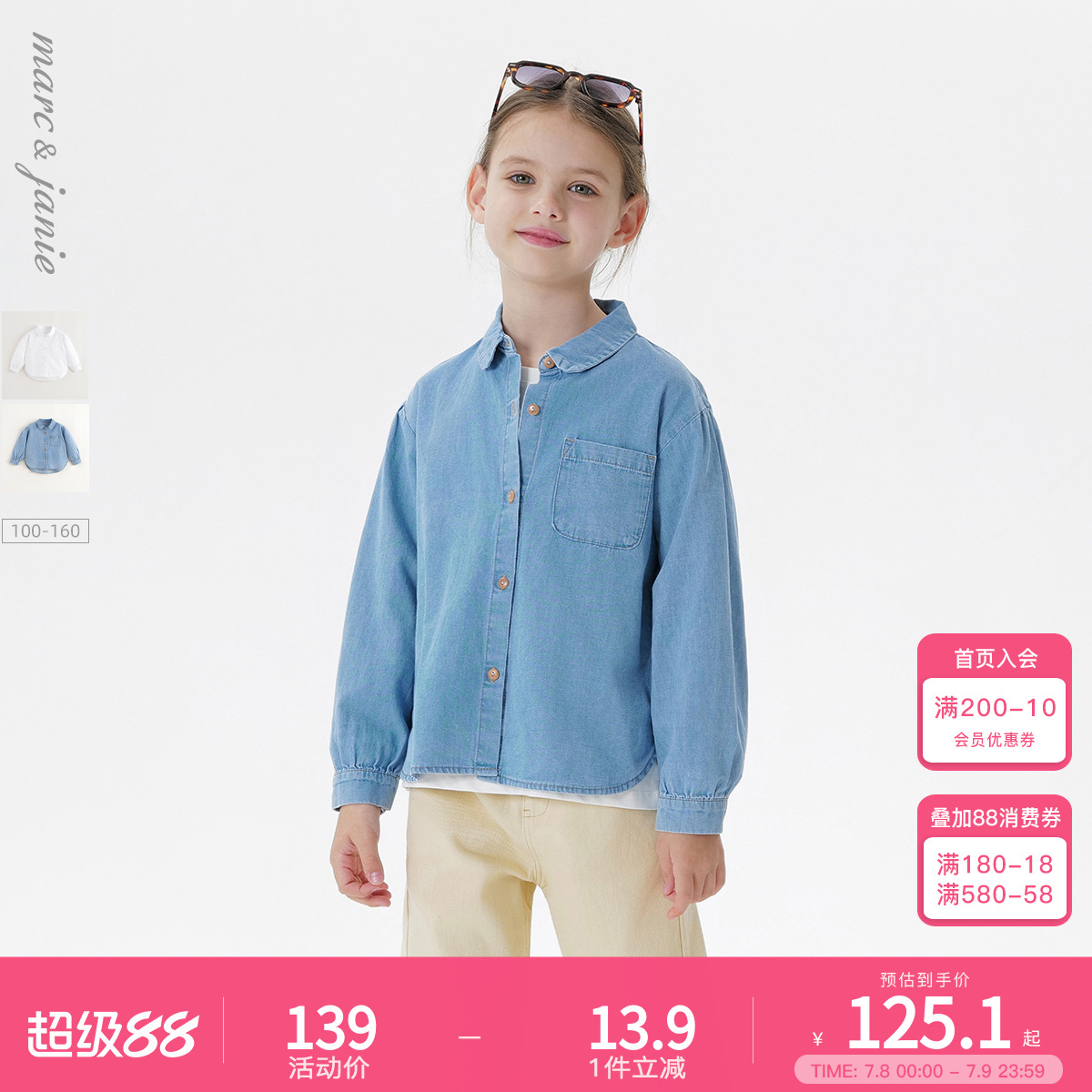 馬克珍妮女童時尚百搭牛仔襯衫兒童純棉襯衣2025年春裝新款250172