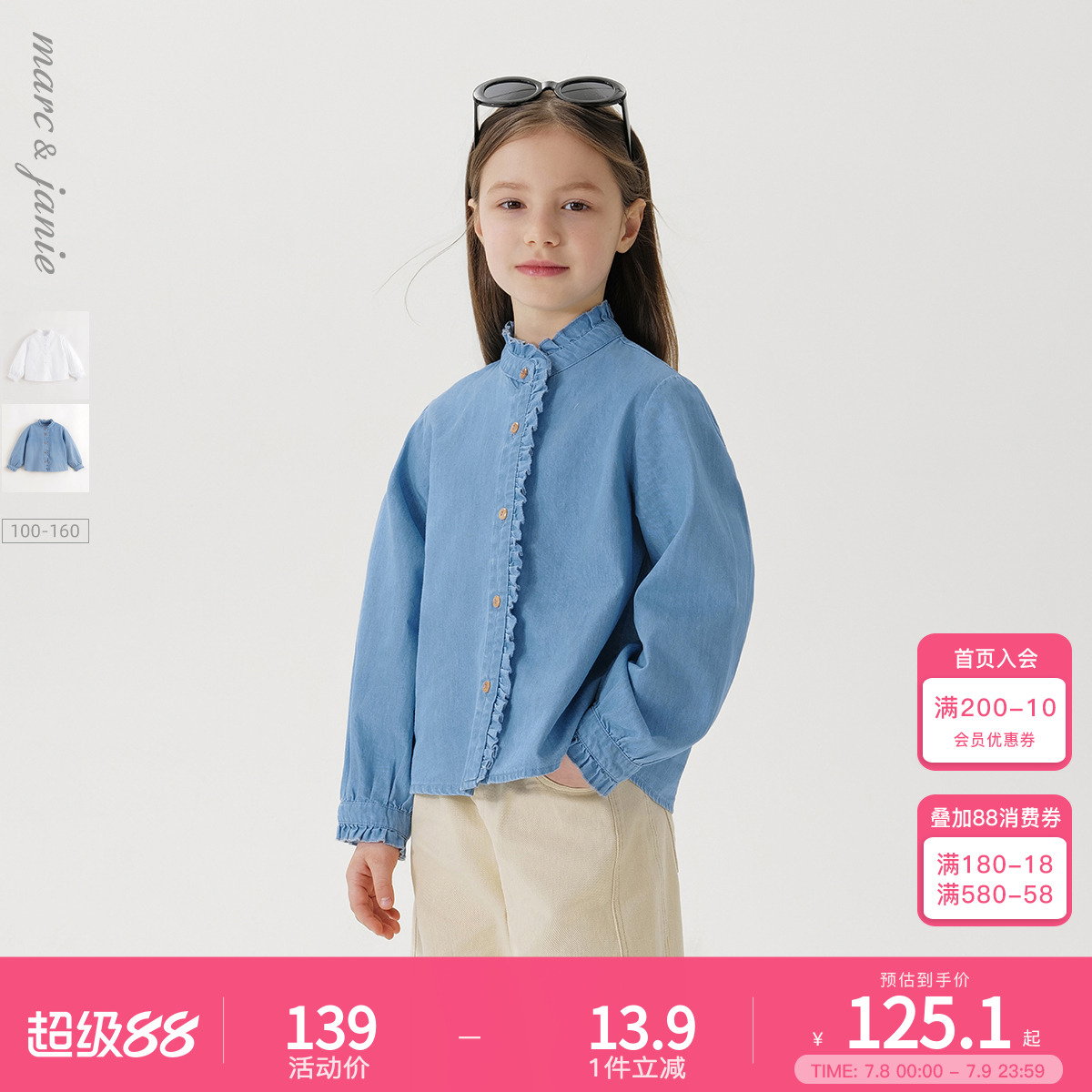 馬克珍妮女童復古花邊立領牛仔襯衫兒童襯衣2025年春裝新款250171