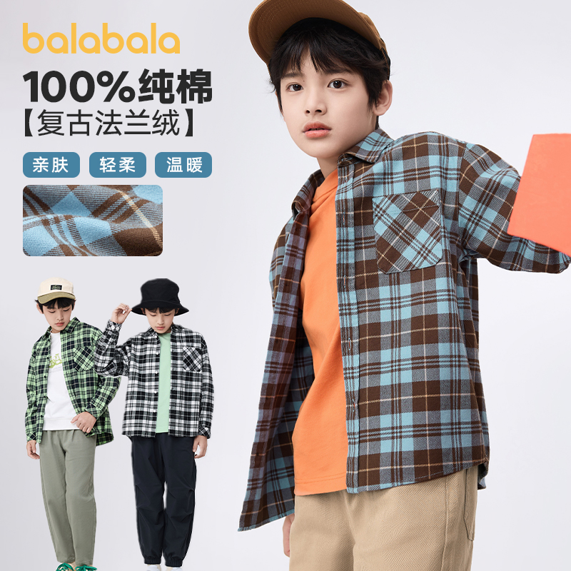 巴拉巴拉男童襯衫中大童格子襯衣兒童純棉上衣2025秋季新款童裝潮