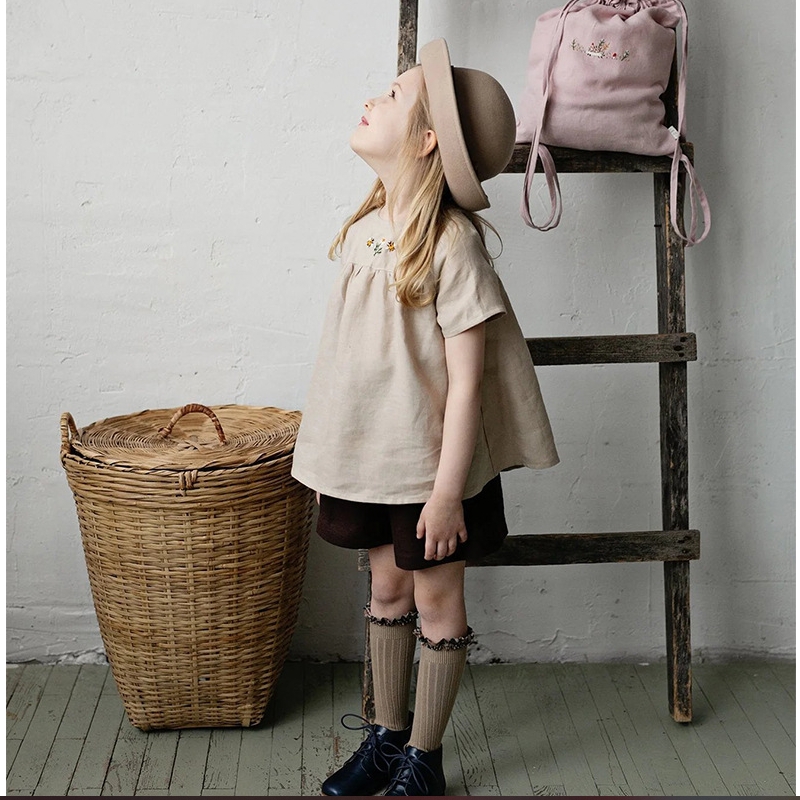 女童棉麻短袖娃娃衫輕薄透氣2025歐美夏季新款女寶寶T恤洋氣上衣