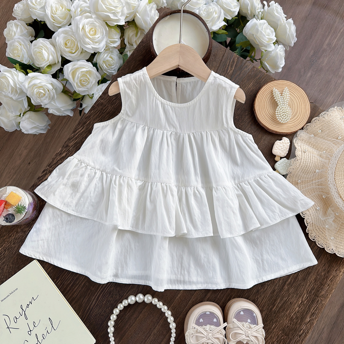 女寶蛋糕上衣無袖白色時尚小女孩夏季薄上衣洋氣百搭女童襯衫套頭