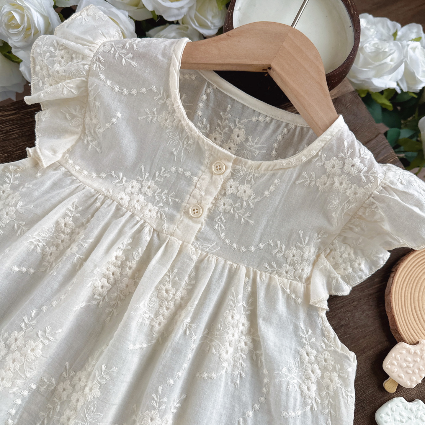甜妹女童娃娃衫夏季t恤鏤空花邊飛袖設計感女孩襯衫純棉小衫兒童