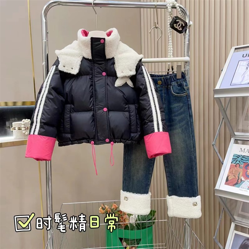 女童連帽立c領2024羽絨棉服新款冬季兒童短款外套棉服加厚洋氣時