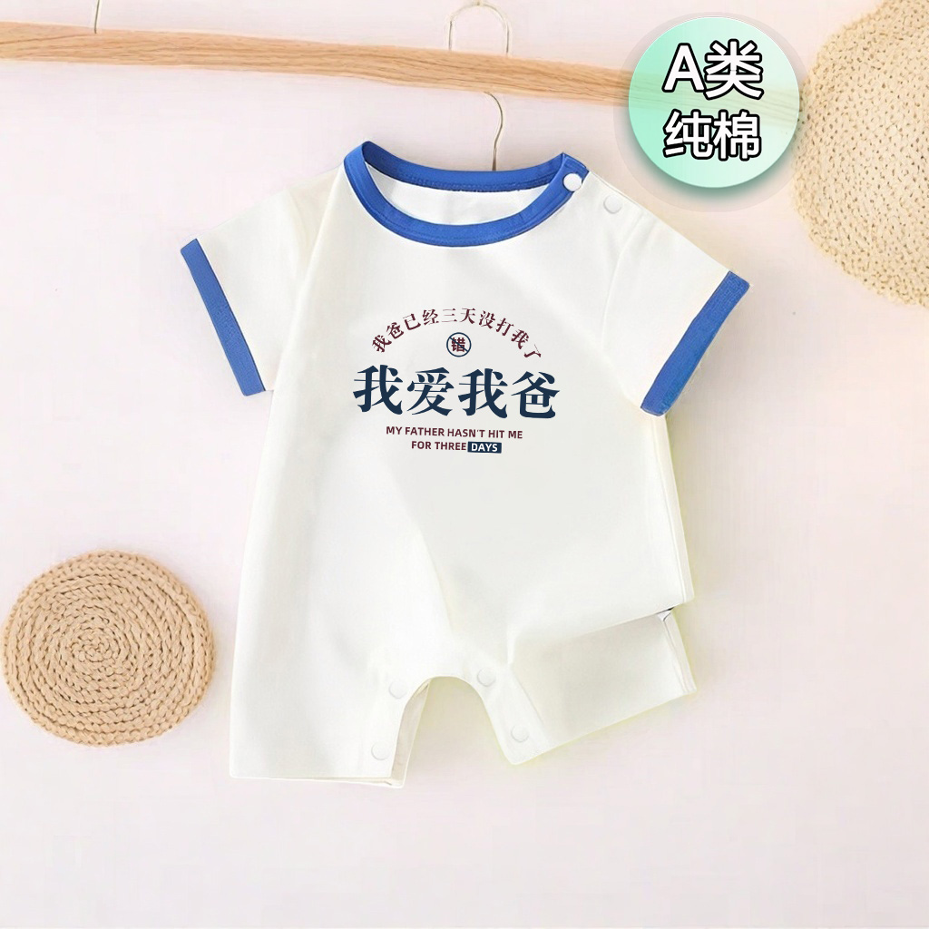 我愛我爸~0-12嬰兒包屁衣夏季男寶寶女連體衣滿月幼兒哈衣短袖夏