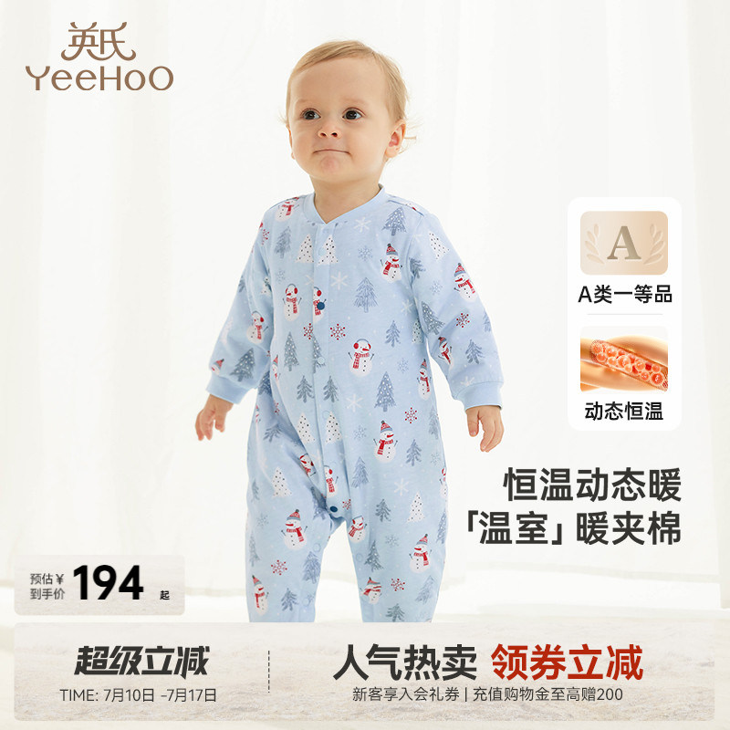 英氏嬰兒夾棉連體衣秋冬加厚保暖新生兒冬季寶寶衣服新款哈衣