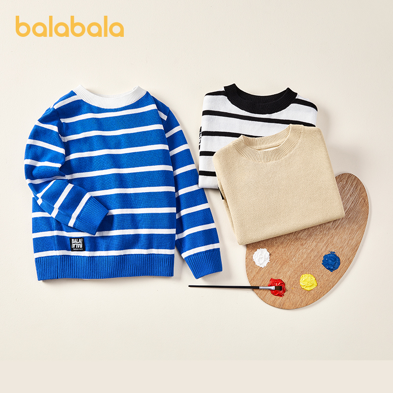 巴拉巴拉男童毛衣小童條紋針織衫兒童純棉打底衫2025春秋新款童裝