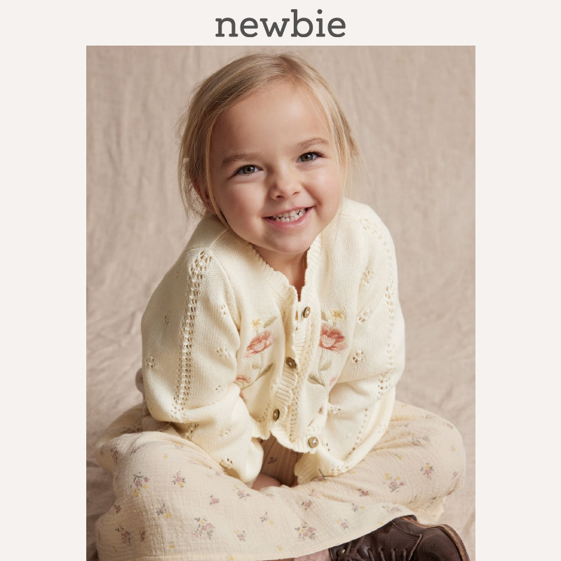 Newbie瑞典進口童裝春夏新款白色花卉刺繡開衫