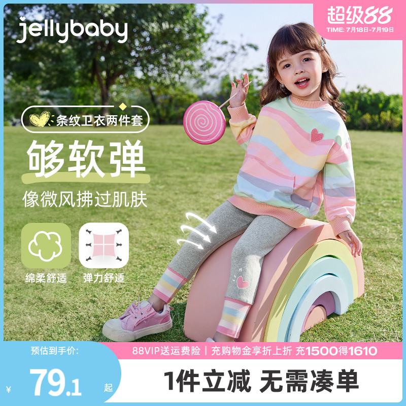 [7A抑菌]女童休閑套裝小童秋季甜酷兩件套兒童彩色條衣服寶寶秋裝