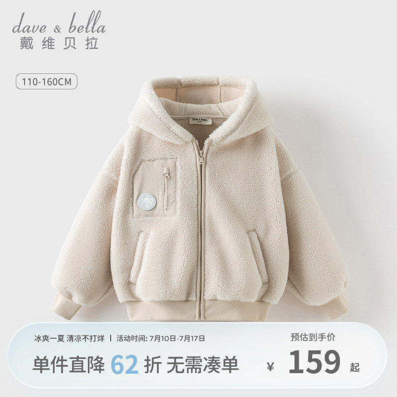 戴維貝拉女童毛絨外套中大童冬裝外衣2025新款兒童連帽童裝上衣