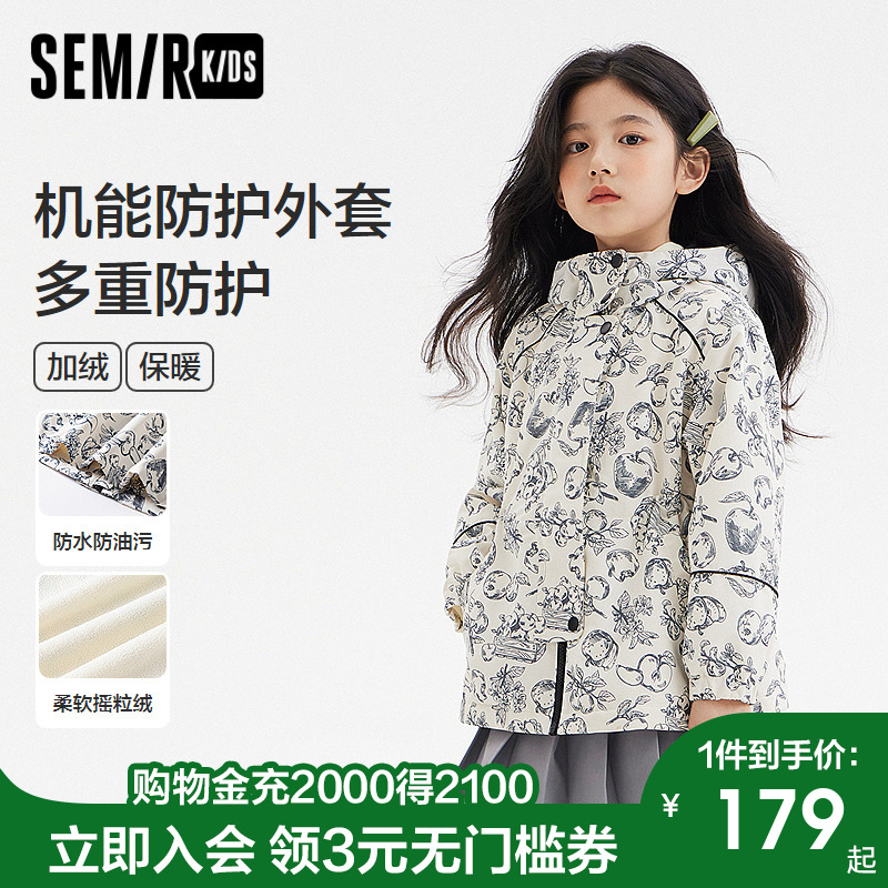 森馬兒童外套春季2025新款寬松保暖連帽上衣女童甜美印花休閑童裝